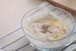 Mix all the ingredients together, adding more flour if necessary.