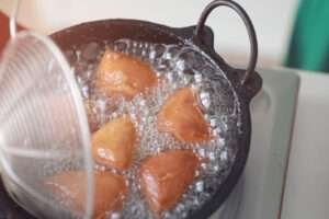 Remove Mandazi from oil and drain on paper towels or Mandazi are best served warm.